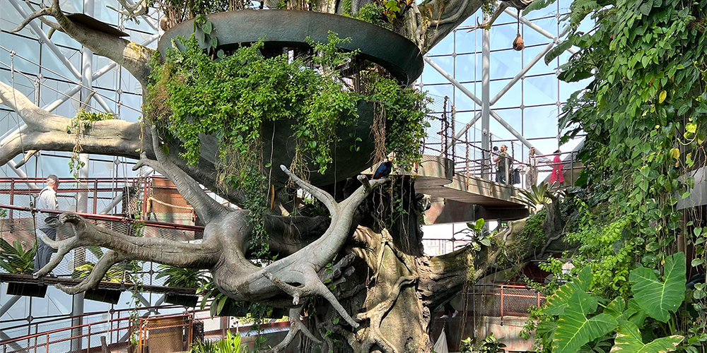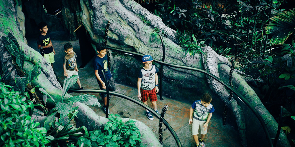 Visitors can explore several levels of the biodome, discovering tropical birds, reptiles, insects, and mammals such as sloths while learning about the delicate balance of rainforest environments. The experience is designed to be both educational and interactive, offering insight into biodiversity, conservation, and the importance of protecting natural habitats.