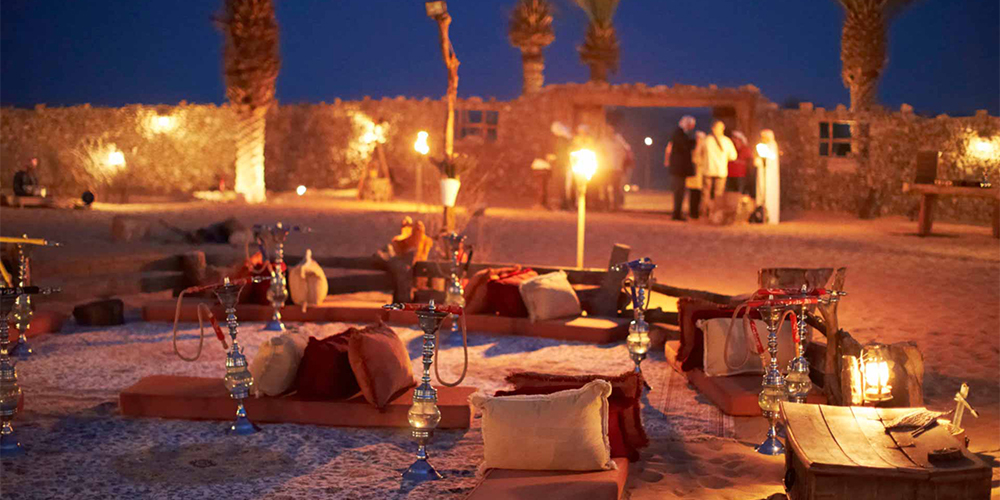 Relax and enjoy a traditional shisha session under the stars.