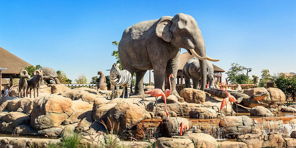Explore different themed areas such as the African, Asian, and Arabian villages.