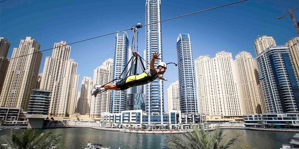 Experience an exhilarating adventure as you glide across Dubai Marina on one of the world’s most exciting urban ziplines. Starting from a height of approximately 170 meters, you will descend along a 1-kilometer line while enjoying breathtaking panoramic views of the marina and its impressive skyline, reaching speeds of up to 80 km/h.