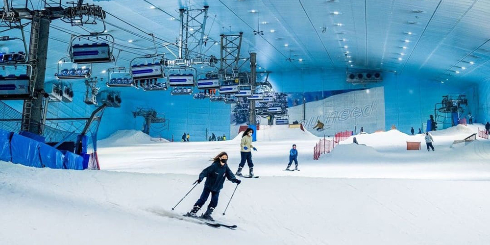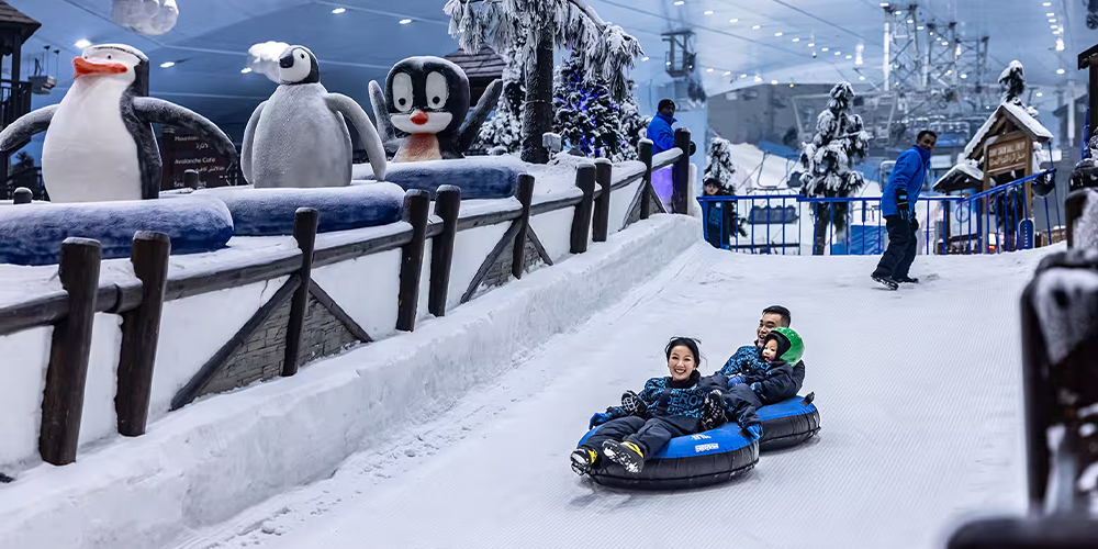 Guests can play in the snow, ride the chairlift, explore ice caves, and try fun attractions such as tubing runs and snow slides. The park maintains a sub-zero temperature year-round, allowing visitors to experience a winter atmosphere in the middle of the desert.