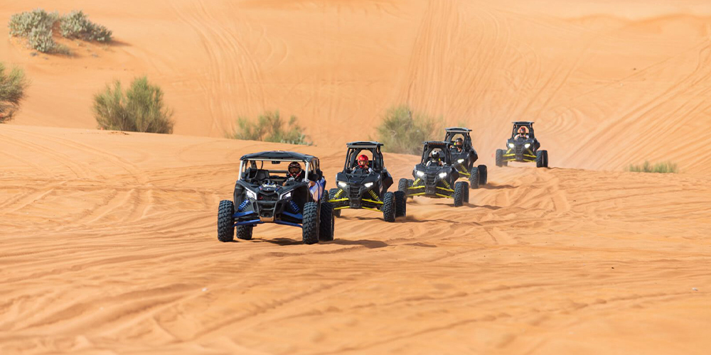 The Buggy & Quad Bike Safari in Dubai offers an exhilarating adventure through the iconic red sands of Badayer Desert. Guests can choose from one, two, or four-seater buggies or ride solo on agile Yamaha 350cc quad bikes, all designed to handle the challenging desert terrain safely and comfortably.