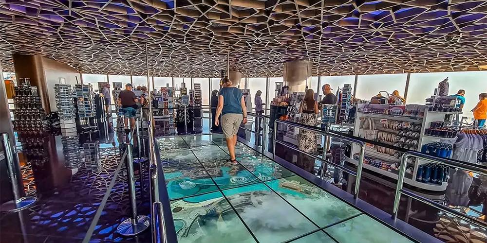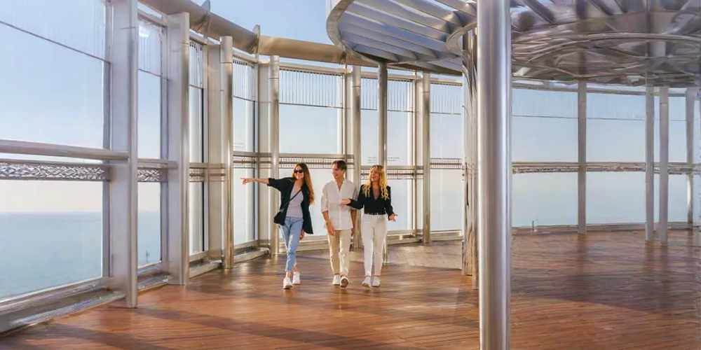 🔭 Panoramic Views of Dubai – Enjoy breathtaking 360° views of the city skyline, desert, and the Arabian Gulf from the observation decks on the 124th and 125th floors.